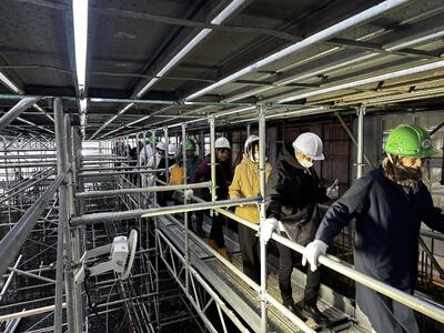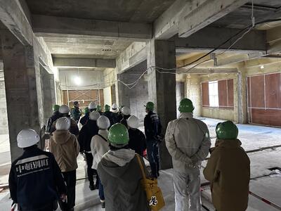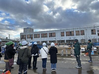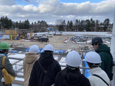 11月29日に町民向けの建設現場見学会を行いました。学校づくり授業見学会に参加できなかった小中学生や、高校生、保護者、町民の方、卒業生、こども園関係者など様々なお立場の方が参加してくださいました。
