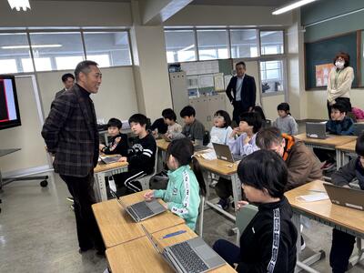 松田先生からは、「こども園から取り組んでいる『英語で遊ぼう』からの一貫カリキュラムがあるので、小学校1・2年生もスムーズにキーボードでコマンド入力が出来ると思います。中頓別の進めようとしている教育は素晴らしいと思います。」と、フィードバックをいただきました。