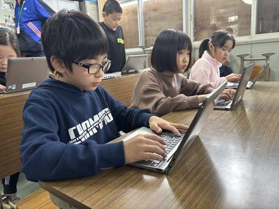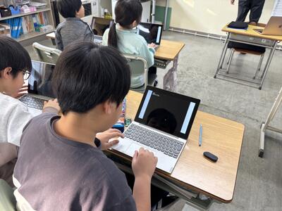 こども園の先生方も1・2年生の授業に参観にきてくれましたが、1・2年生が、コマンド入力(キーボードで文字を直接入力してコンピューターに命令をし実行させること)している姿にビックリしていました。