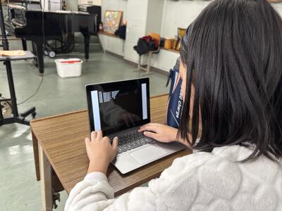 2時間であっという間に、音を出す。アニメーションや曲をつくるなど、オリジナルのプログラミング言語を入力して、実行できるようになりました。