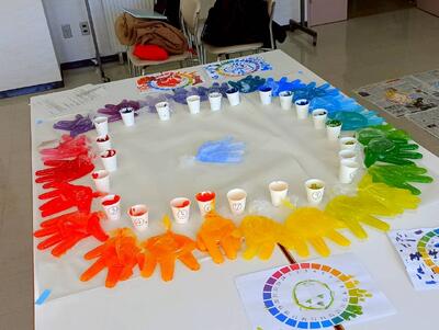 ②放課後なかとん塾での「小学生×色相環ワークショップ」~3色で24色つくれるよ~