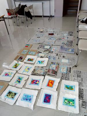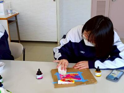 ③なかとんフリースクールでの「小中学生×モダンアートワークショップ」~インクや絵の具でモダンアートに挑戦~