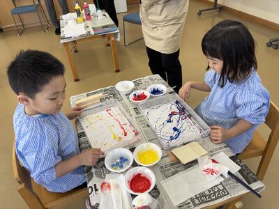 ①こども園での「幼児教育×アートワークショップ」~ビー玉や木でも絵をかけるんだよ~